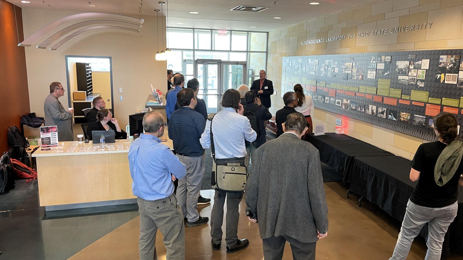 The event opened with guided tours of the ElectroScience Lab, followed by a series of engaging research talks from invited speakers including Chris Ball (ESL), Andrew Sarangan (University of Dayton), Steven Olmshenk (Denison University), Anil Patnaik (Air Force Institute of Technology), and 2023 Nobel Laureate Pierre Agostini (OSU). Guests also enjoyed a working dinner and social hour.